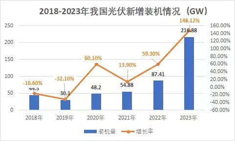 裝機量再度刷新!光伏市場持續(xù)火熱! 1月26日,國家能源局發(fā)布2023年全國電力工業(yè)統計數據。2023年1~12月光伏新增裝機216.88GW,同比增長148.12%。 去年,對于光伏行業(yè)來講是爆發(fā)式增